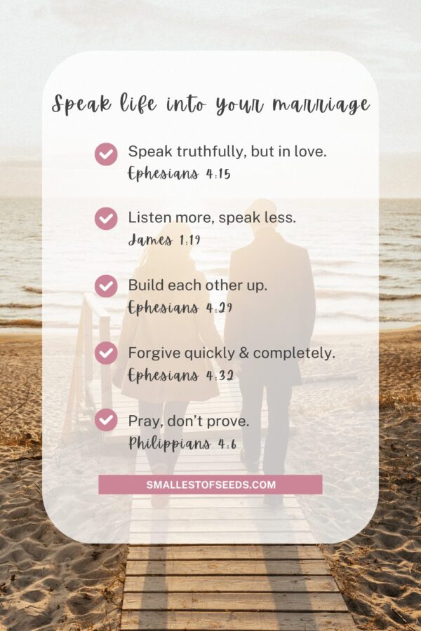 This week, choose just one Scripture-based principle to speak life into your marriage. And as you plant that little seed, invite the Lord to grow it into something beautiful.